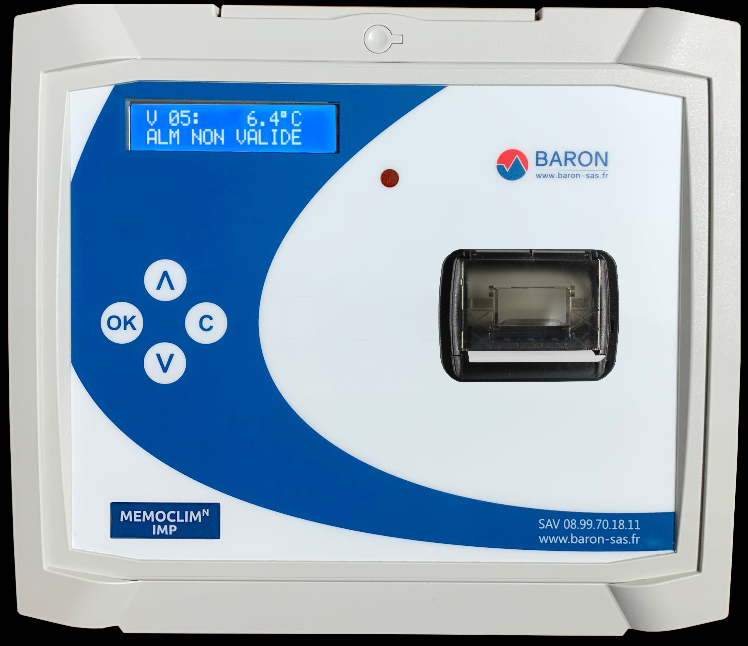 Les modèles d'appareils de type IMP, signifient que votre appareil dispose d'une imprimante en façade, vous avez donc la possibilité d'imprimer vos relevés de températures, alarmes, nom des voies...